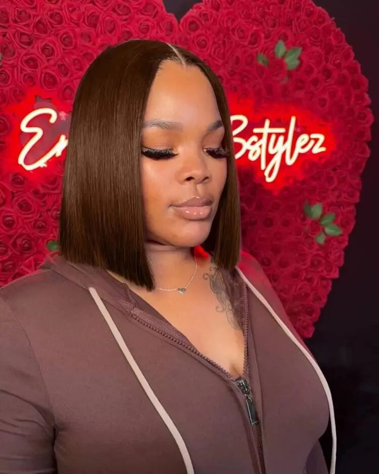 2x6 Silk Straight Bob Lace Frontal Wigs Human Hair 4# Brown Color High
